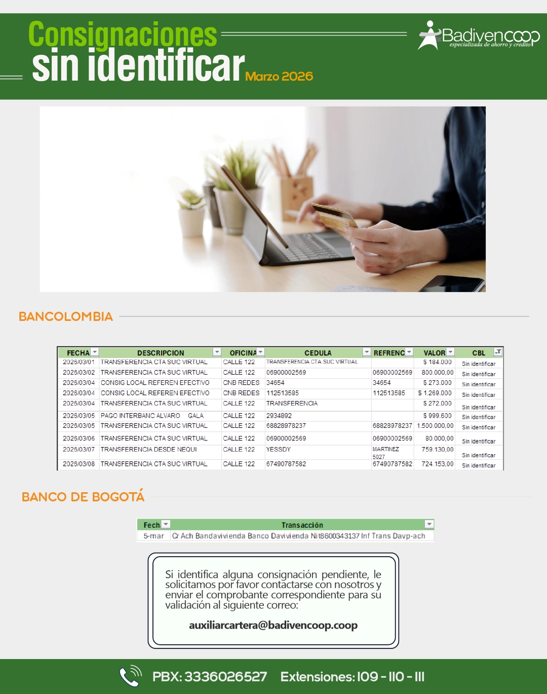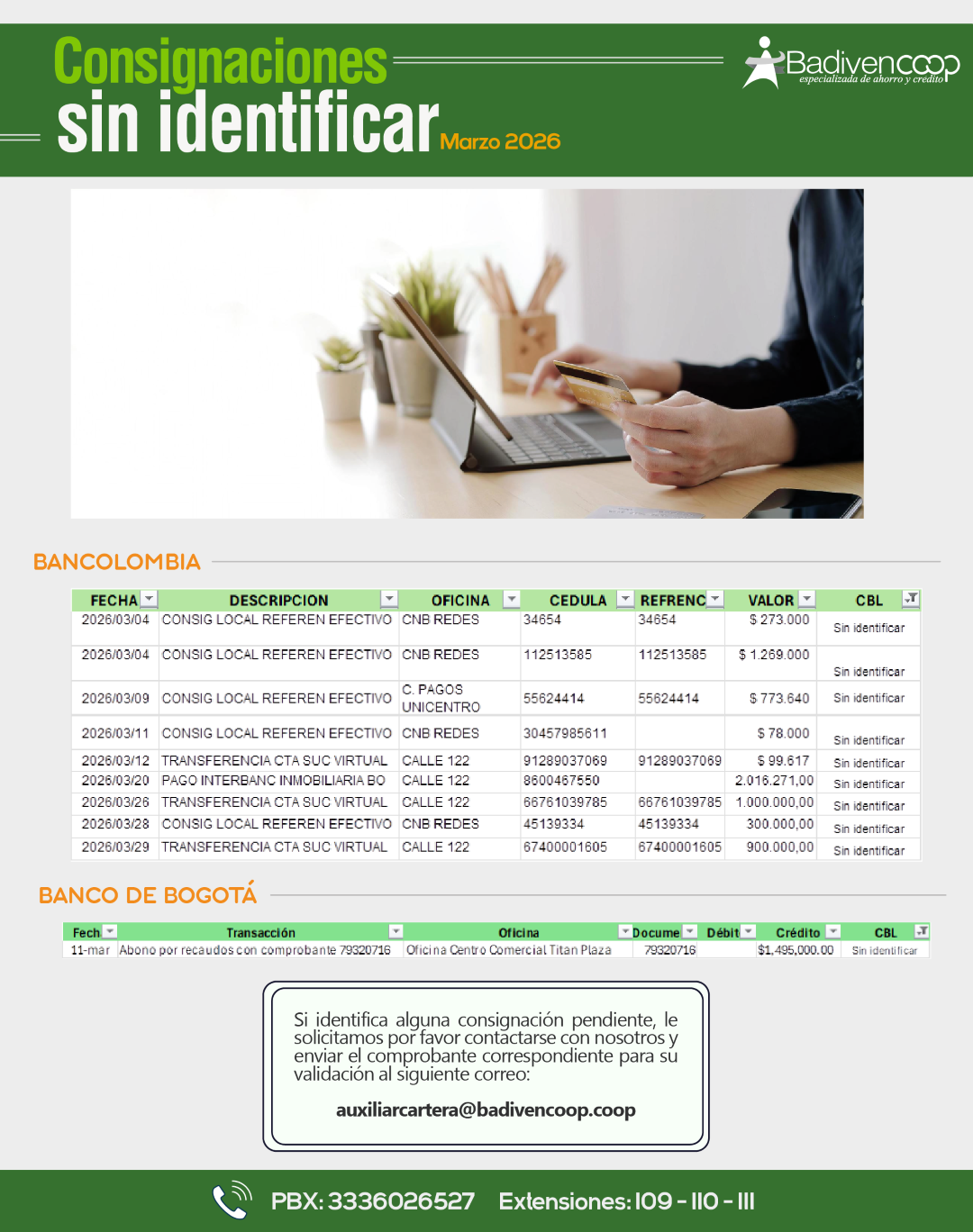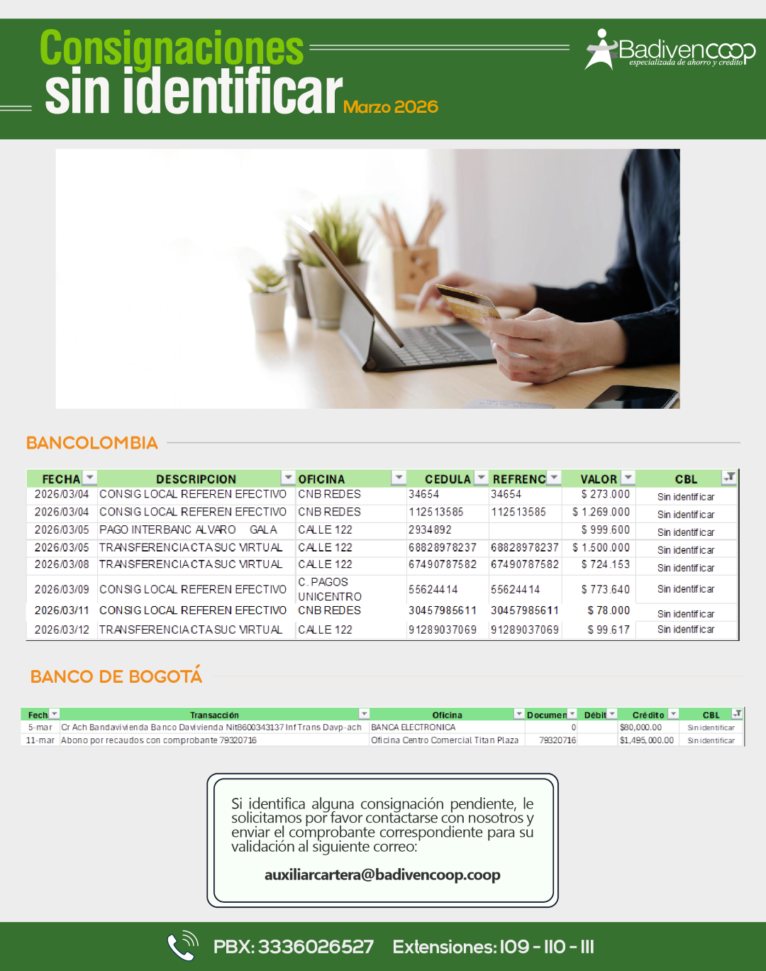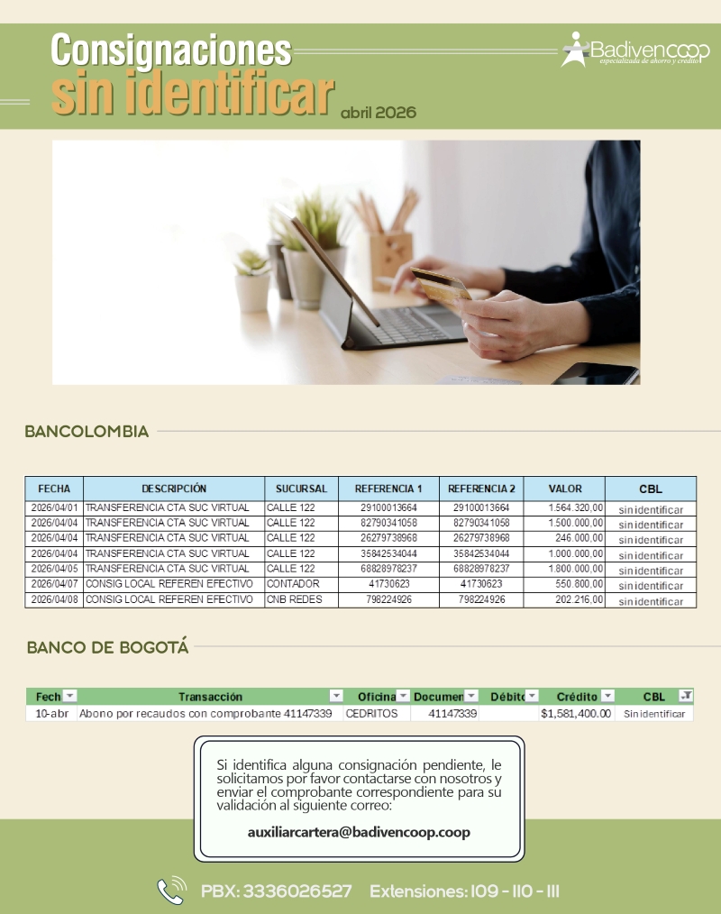 ¿TIENES CONSIGNACIONES PENDIENTES POR IDENTIFICAR?